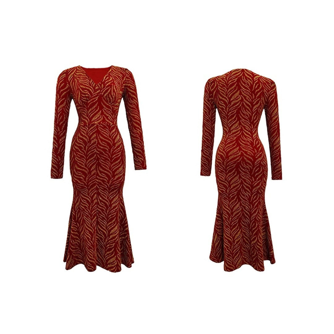 V-neck Slim Long Sleeves Fishtail Long Skirt V1677