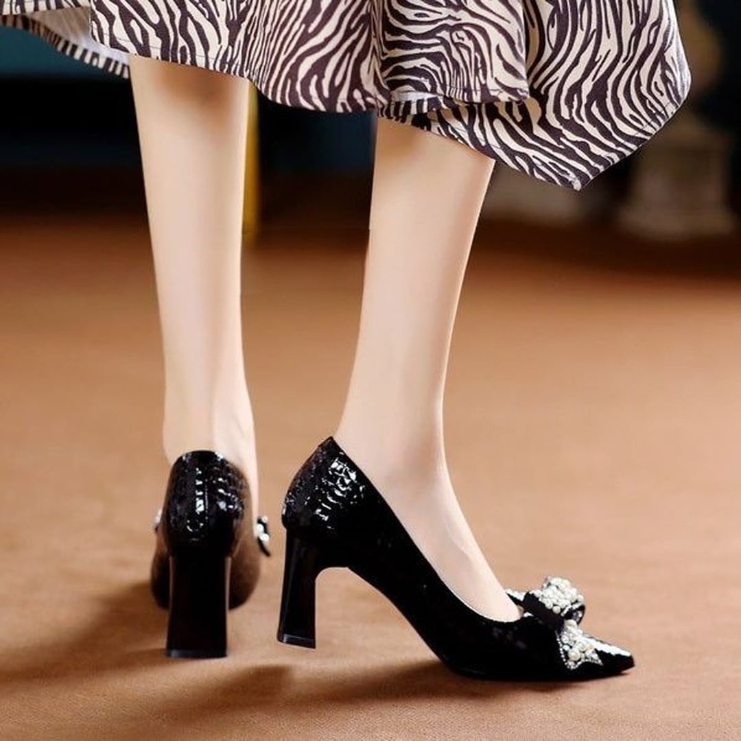 Croc-print Rhinestone Stiletto Pointed Toe High Heels(3color) V1854