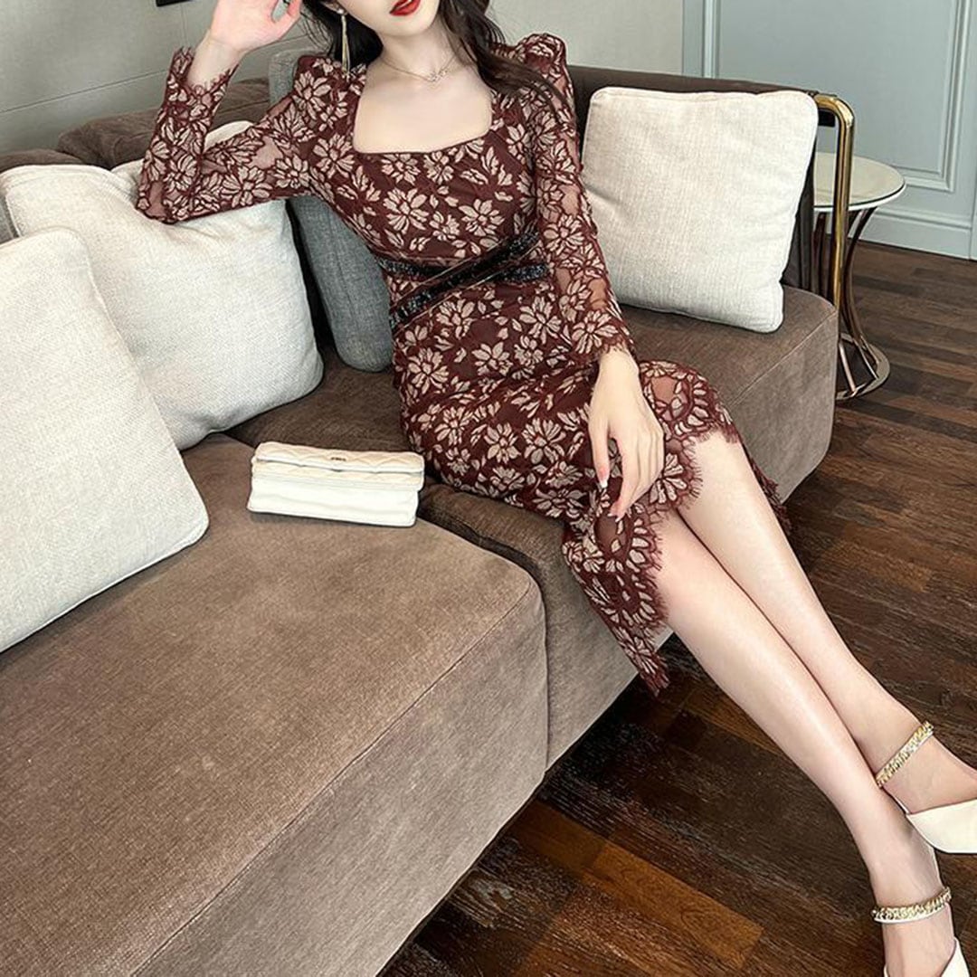 Lace French Style Square Color Feminine Elegant Tight Dress(2color) V1923