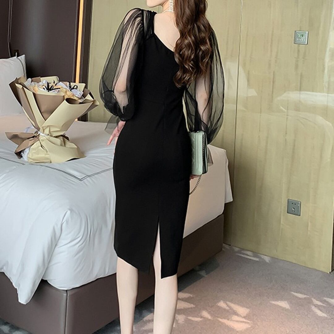 Spring/Autumn French Style Mesh Suspender Long Sleeve Dress(2color) V2097