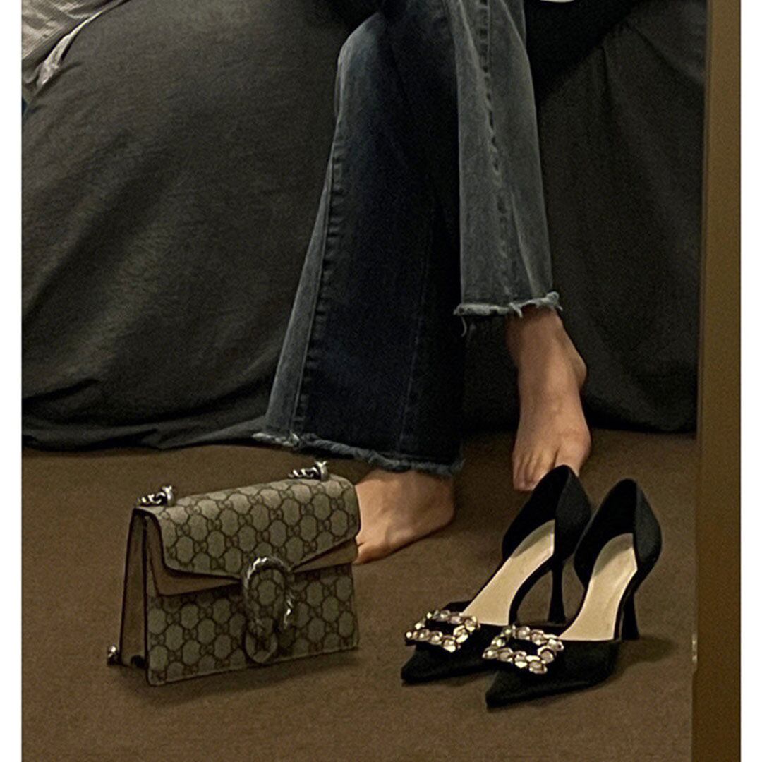French Style Pointed Toe Pin Heel Rhinestone(2color) V2086