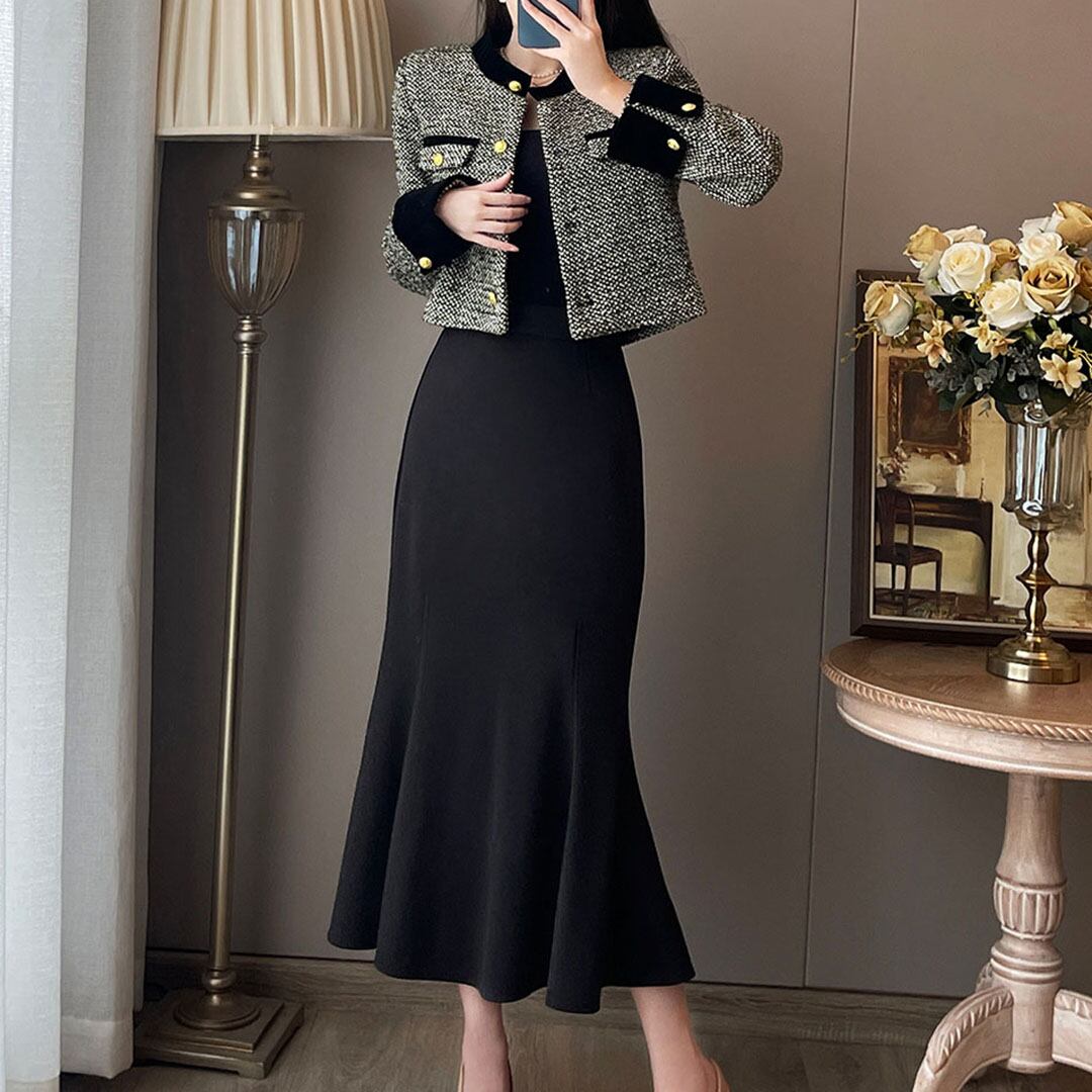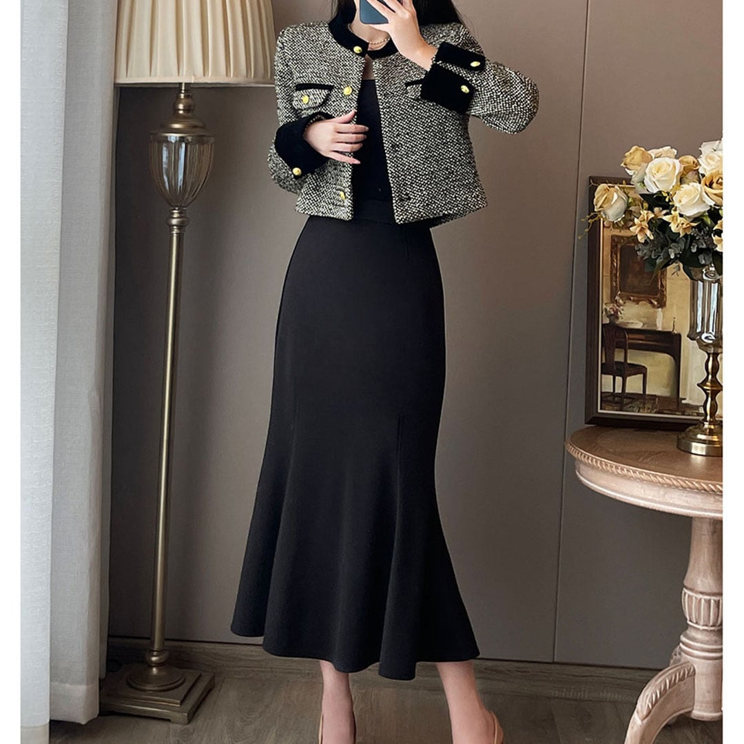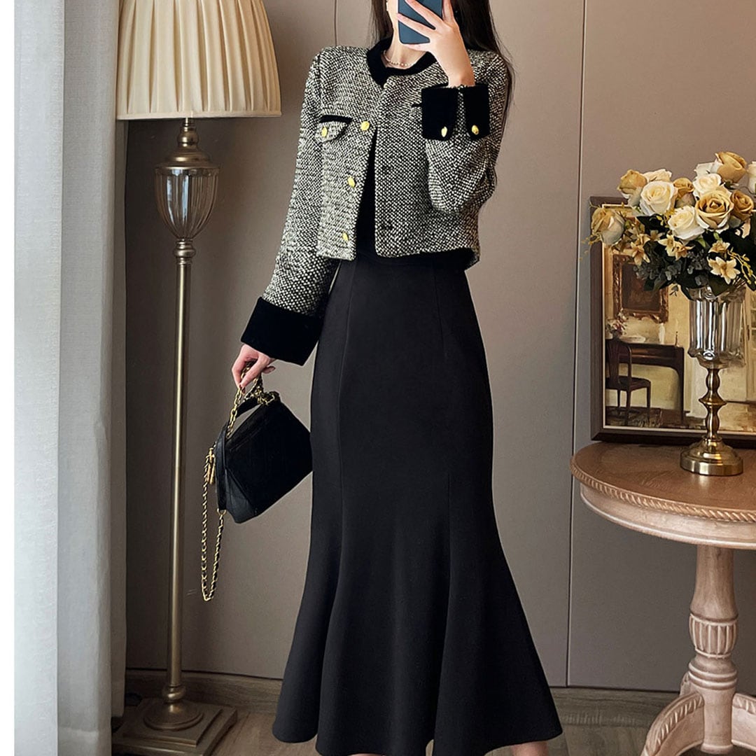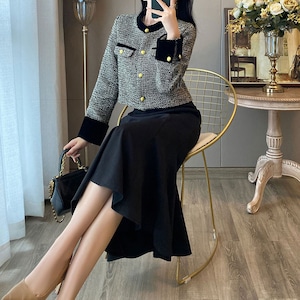 French Style High End Elegant Jacket Dress (Top and Bottom Set) Set up V2194