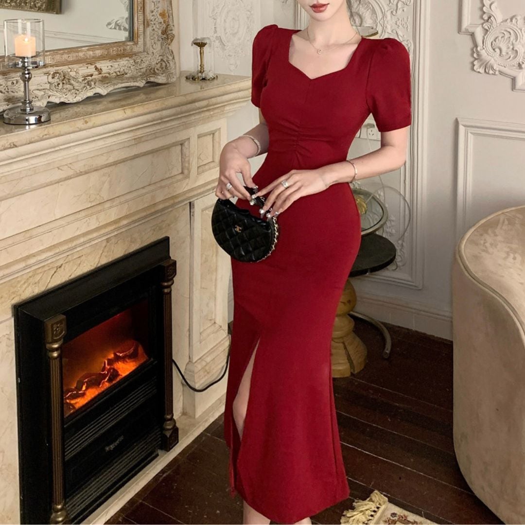 Spring/Summer/Slit Mermaid Skirt Midi Length U Neck(2color) V2408