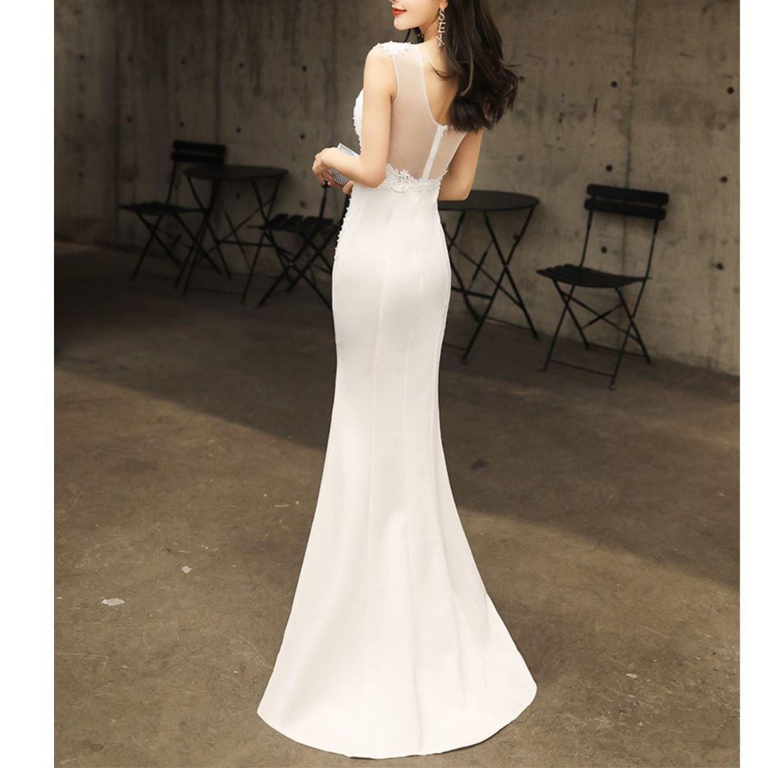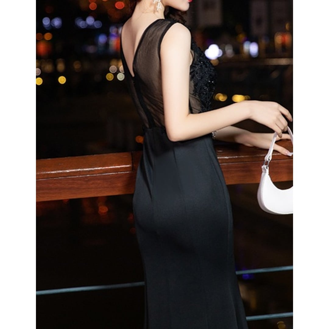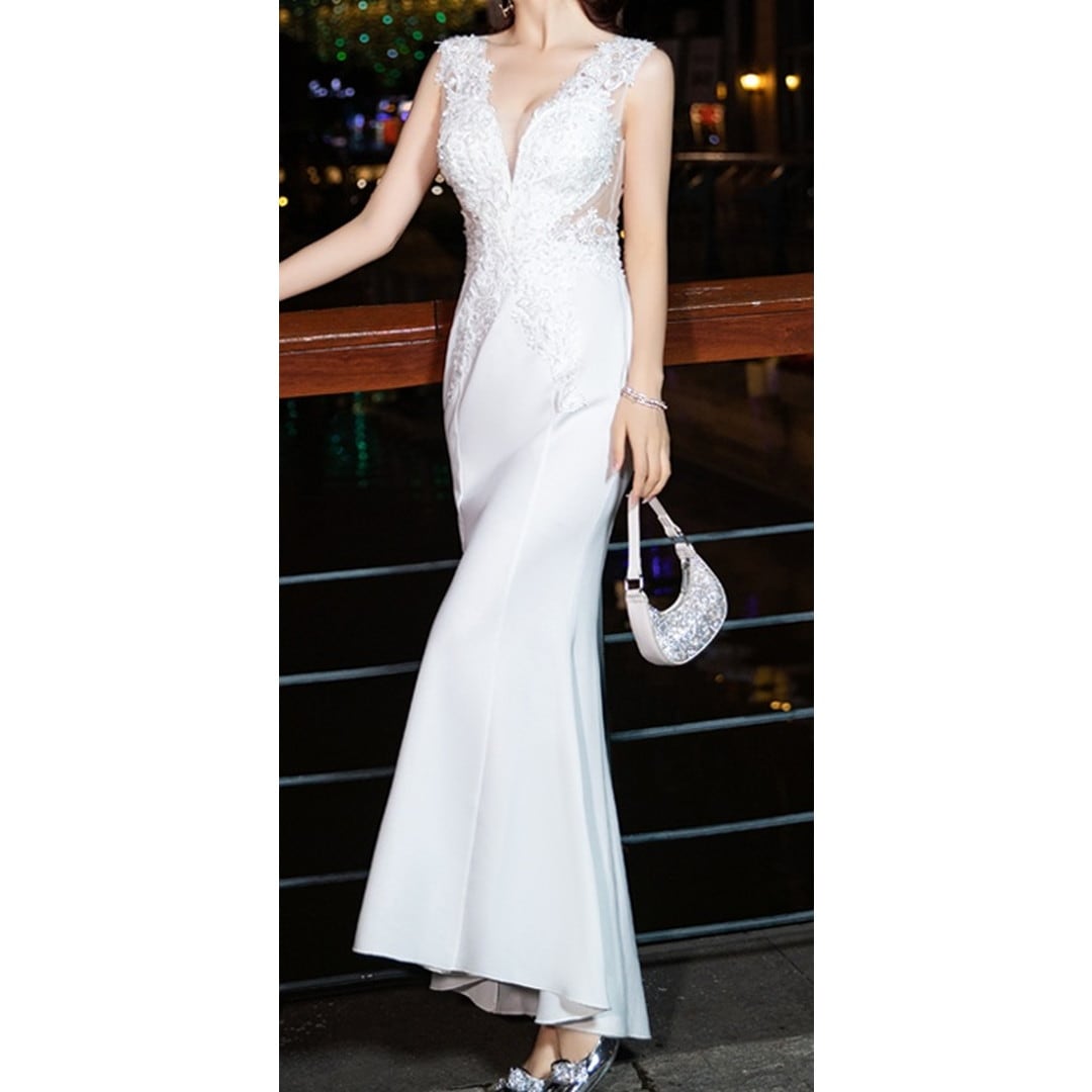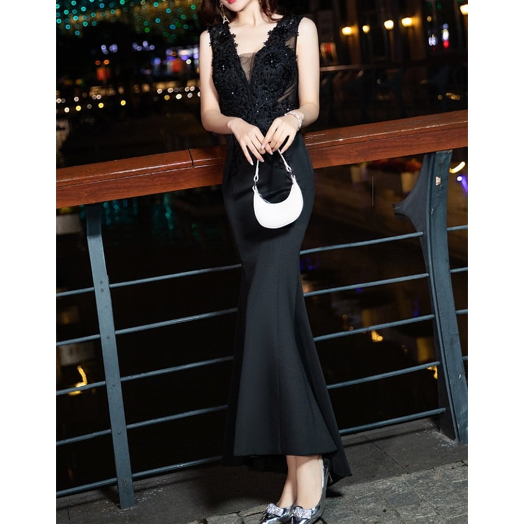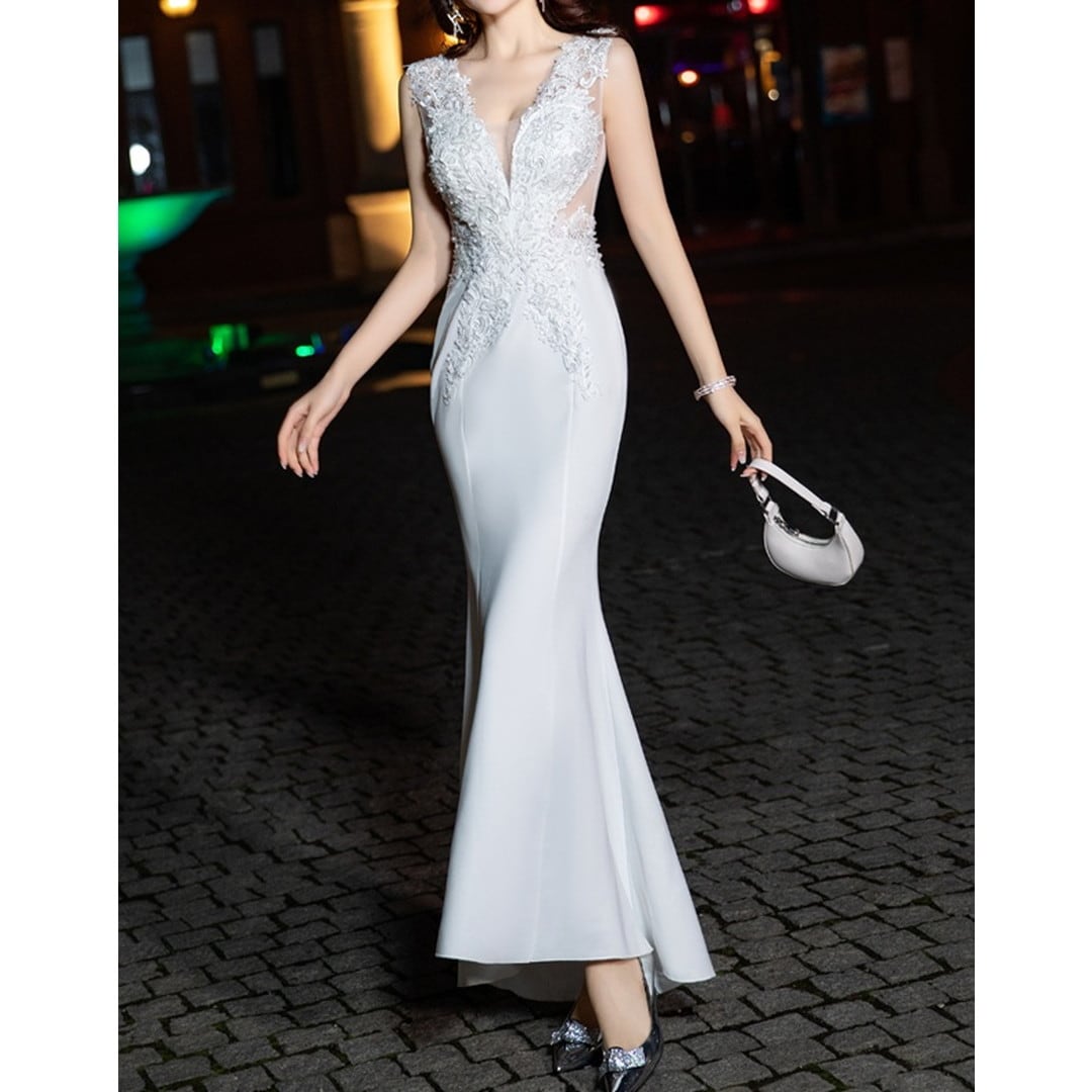 優雅な印象を与える、エレガントなハイエンドのロングフィッシュテールイブニングドレスです。