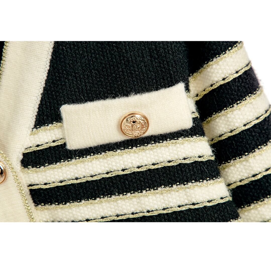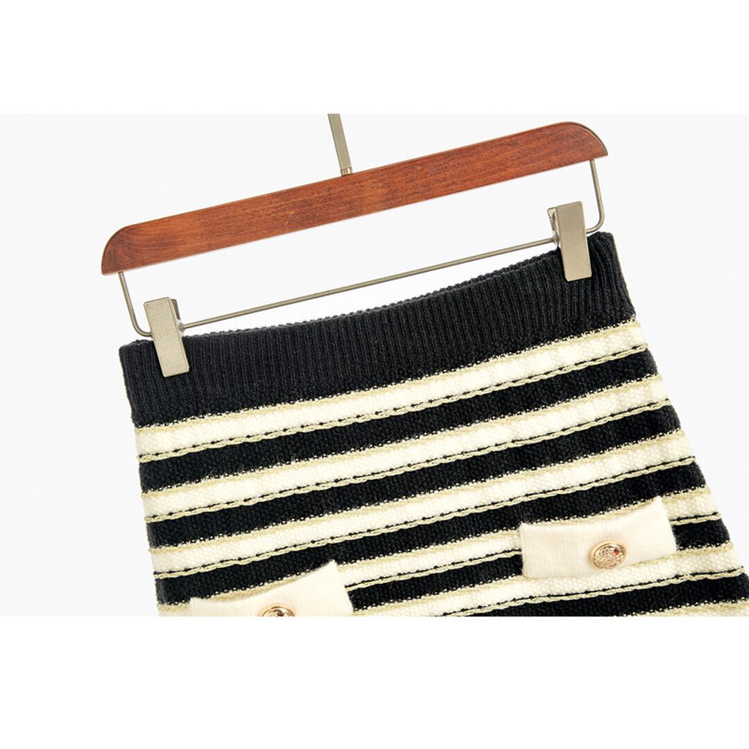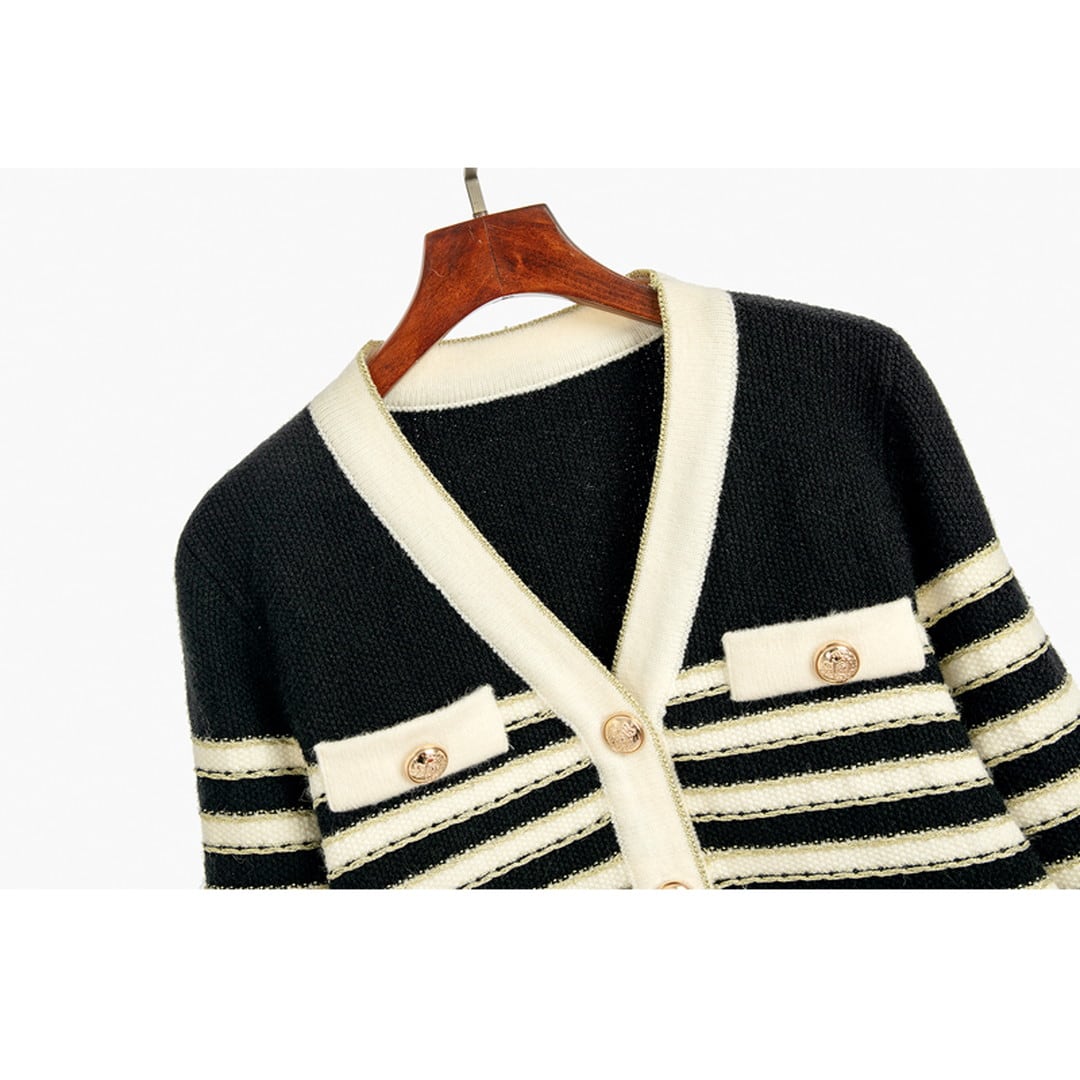 Spring/Autumn Two-piece V-neck Striped Knit Cardigan Short Skirt V2248
