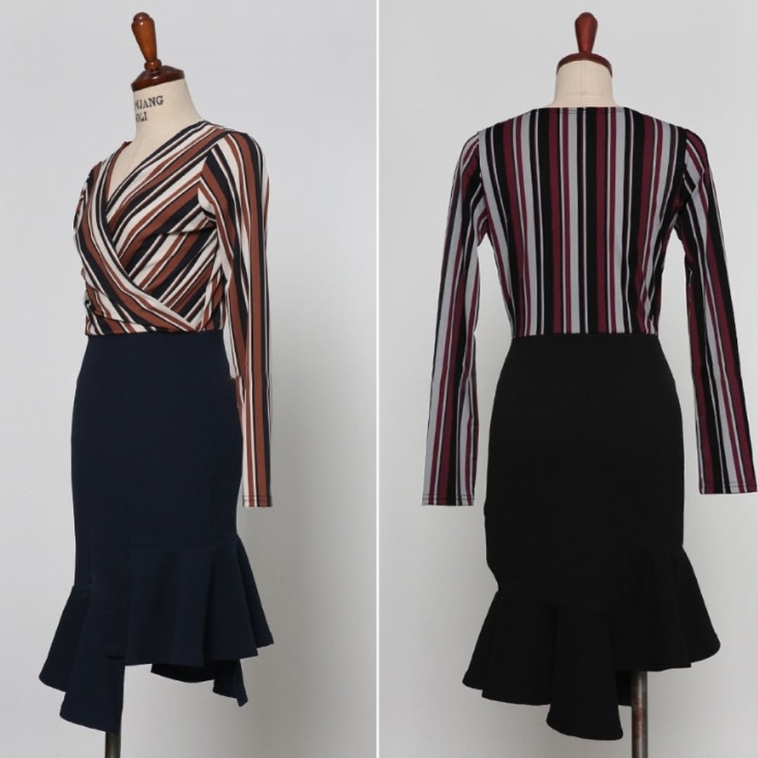 Korean Style Stripe V-Neck Slim Fishtail Dress V2424