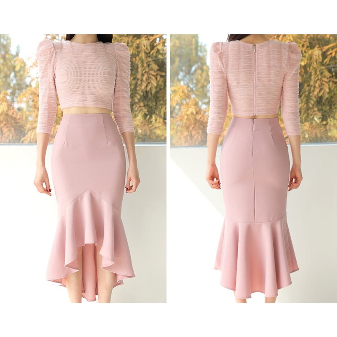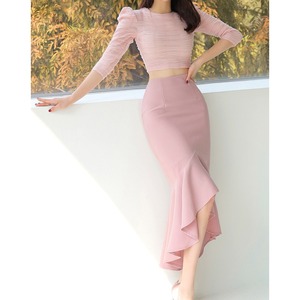 Spring Autumn Korean Style Short Top Slim Fishtail Skirt Setup V2442