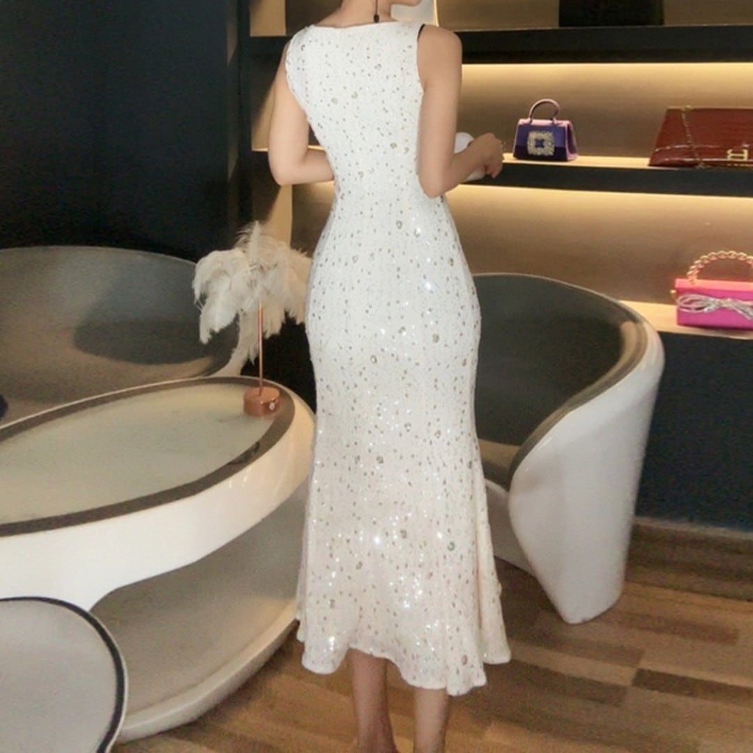 French Style Sleeveless Sequined Fishtail Dress V2470