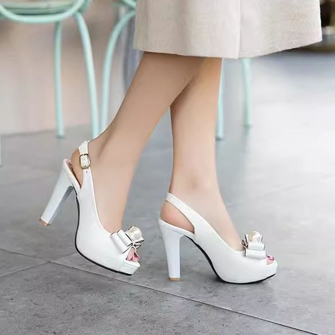 Pearl Fairy Double Ribbon Style Fishmouth High Heels(3color) V501