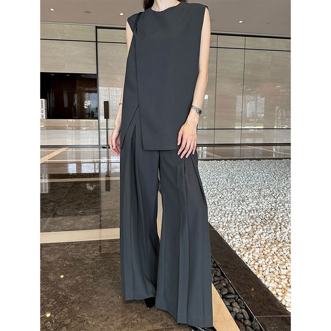 Summer High End Sleeveless Draped Pants setup(2color) V616