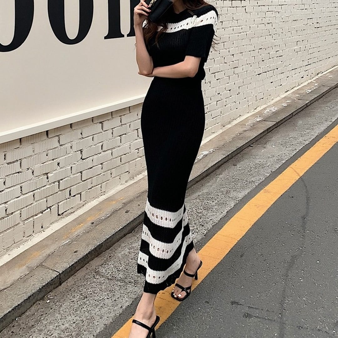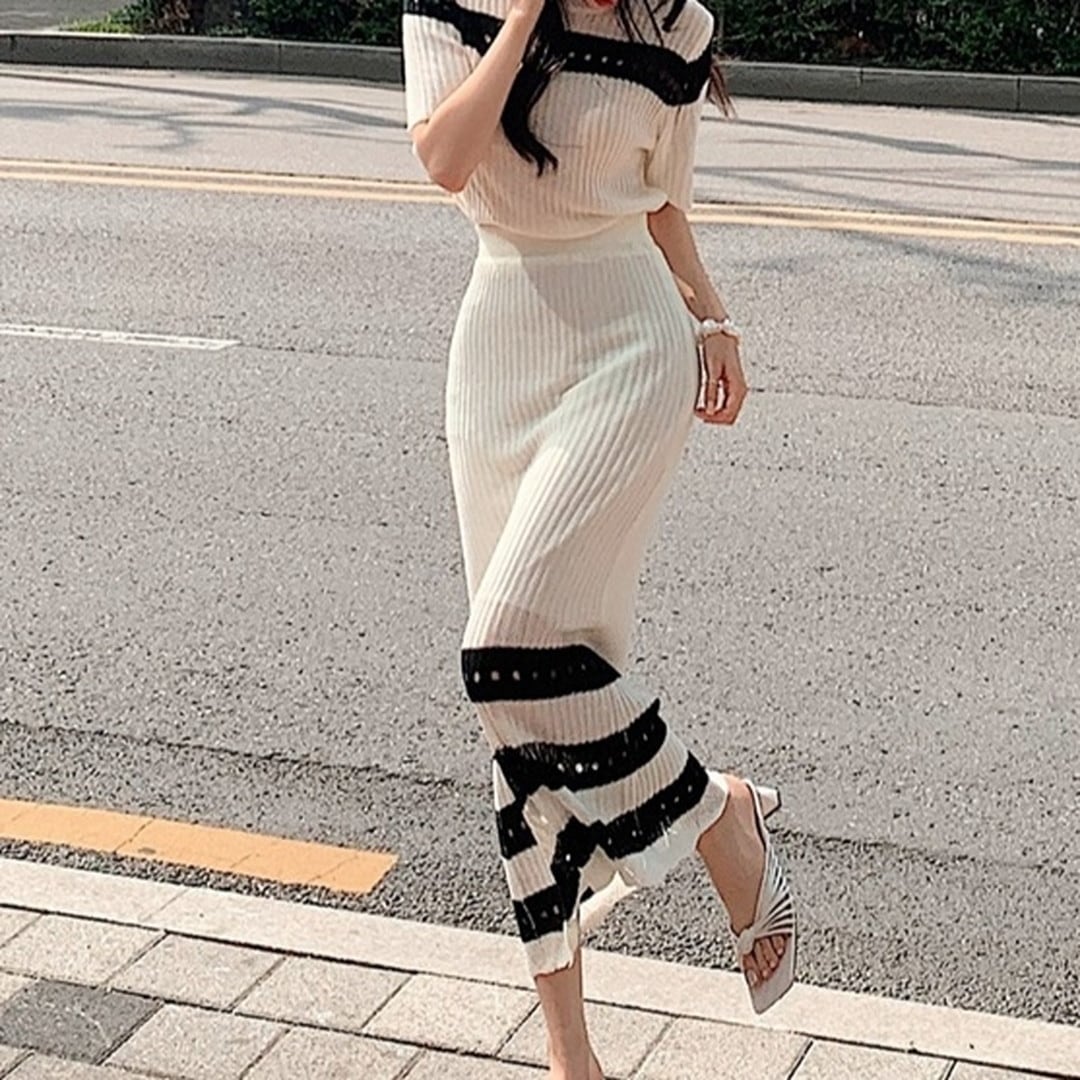 Summer Knit Top Slim Long Skirt setup (2color) V622