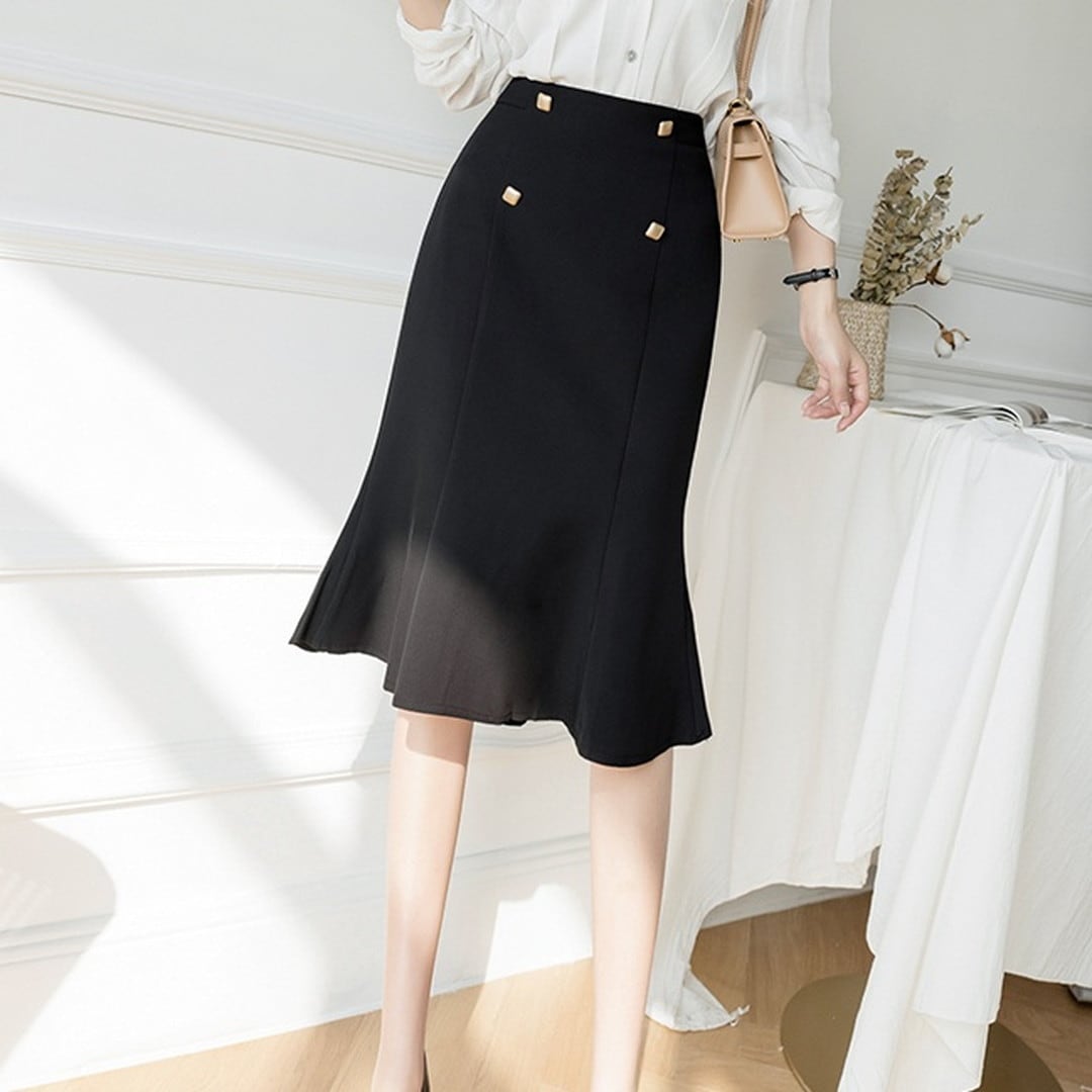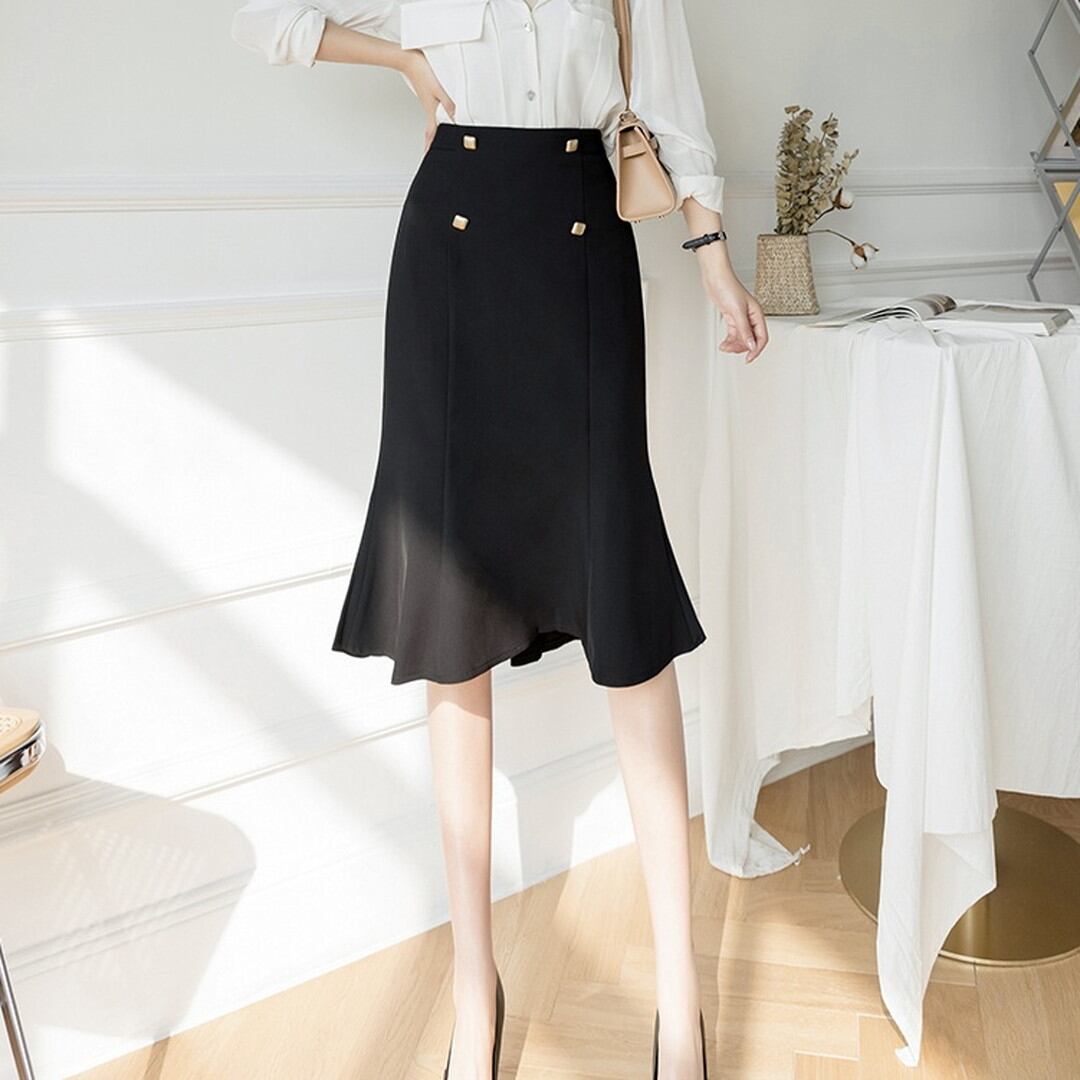 Spring Autumn High Waist Ruffle One-Step Skirt(2color) V635