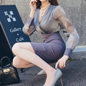 Deep V-Neck Slim OL Skirt Dress V303