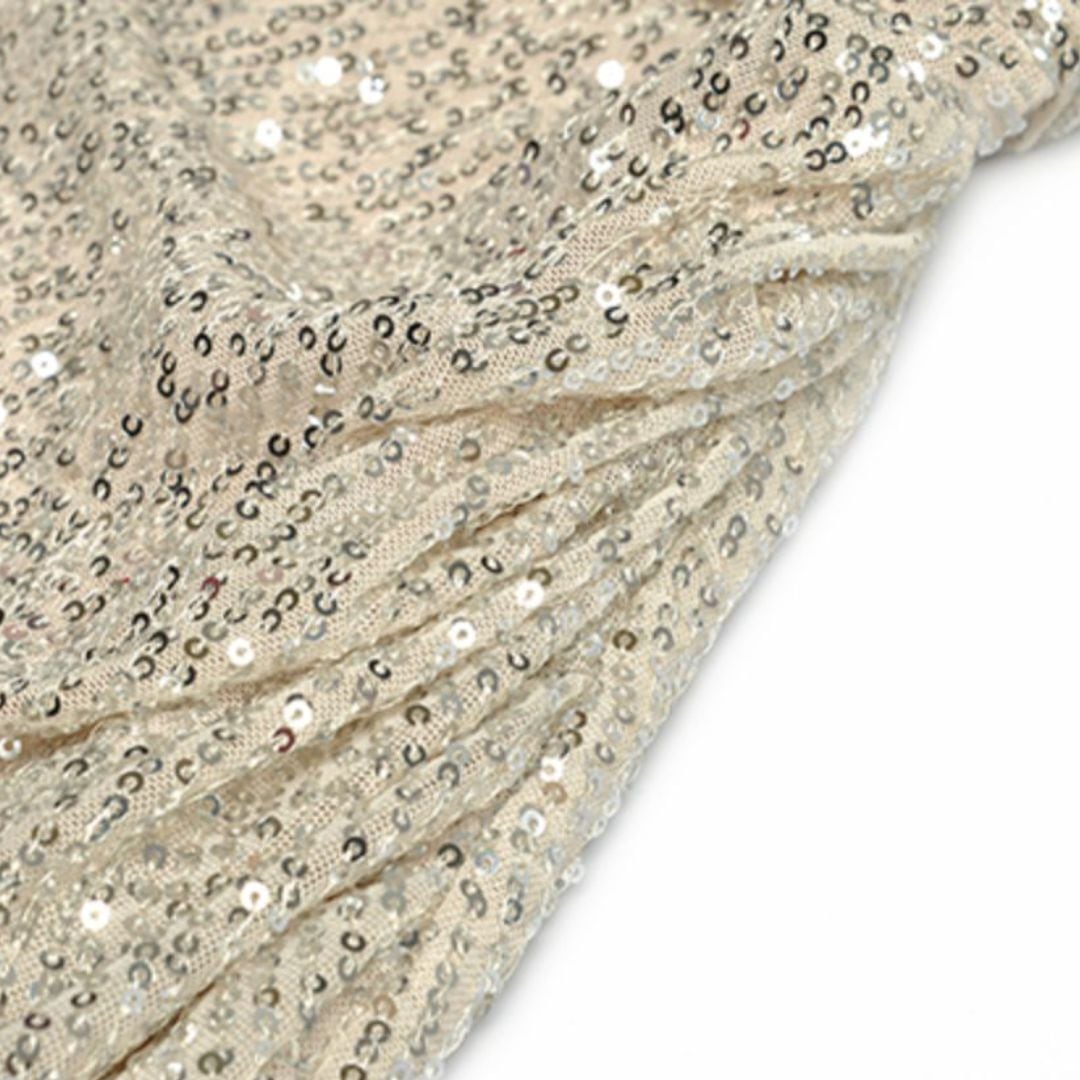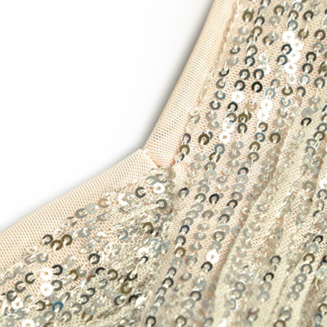 フレンチスクエアネックのビーズ刺繍が施されたエレガントなイブニングドレス。