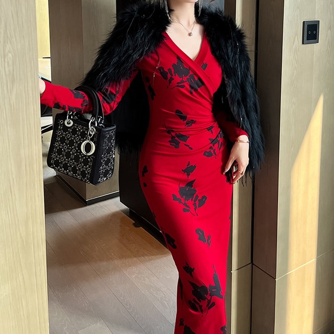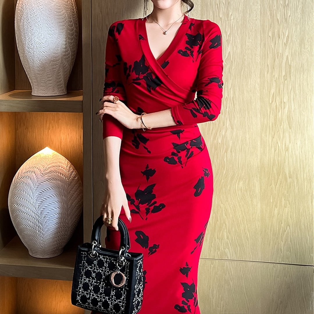 Long Sleeve Slim Hip Cover Long Skirt Dress V725