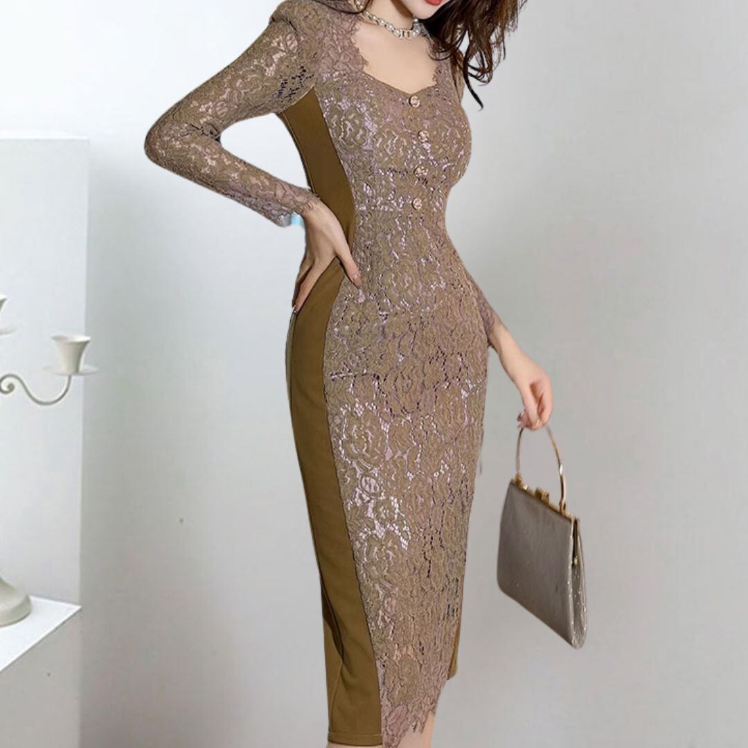 High Waist Puff Sleeve Slim Fit Dress V737