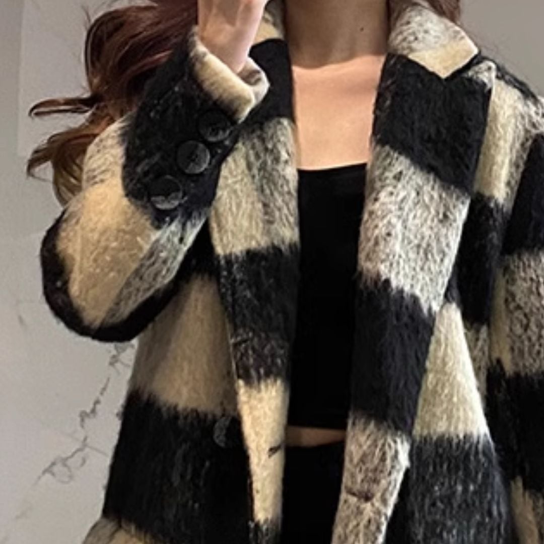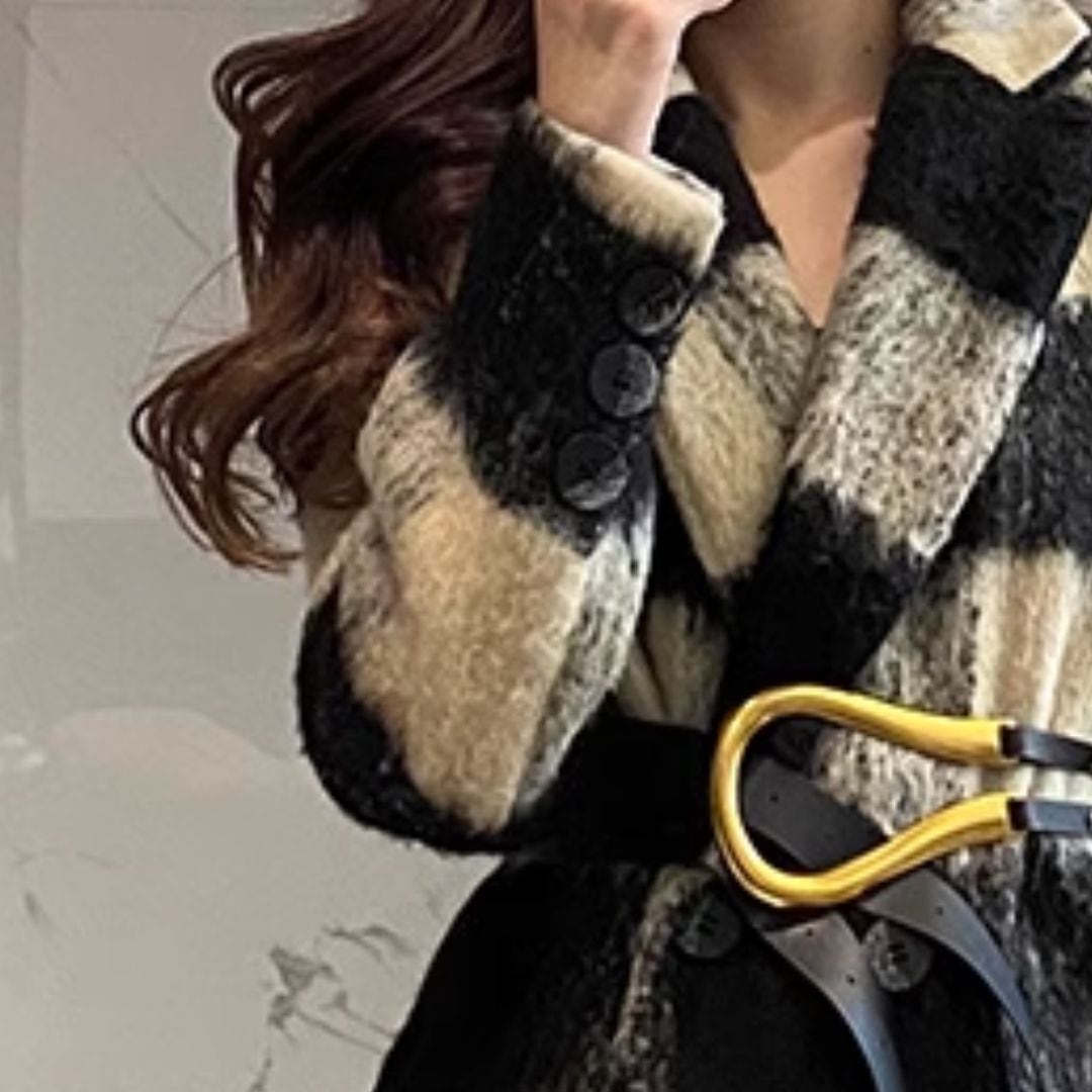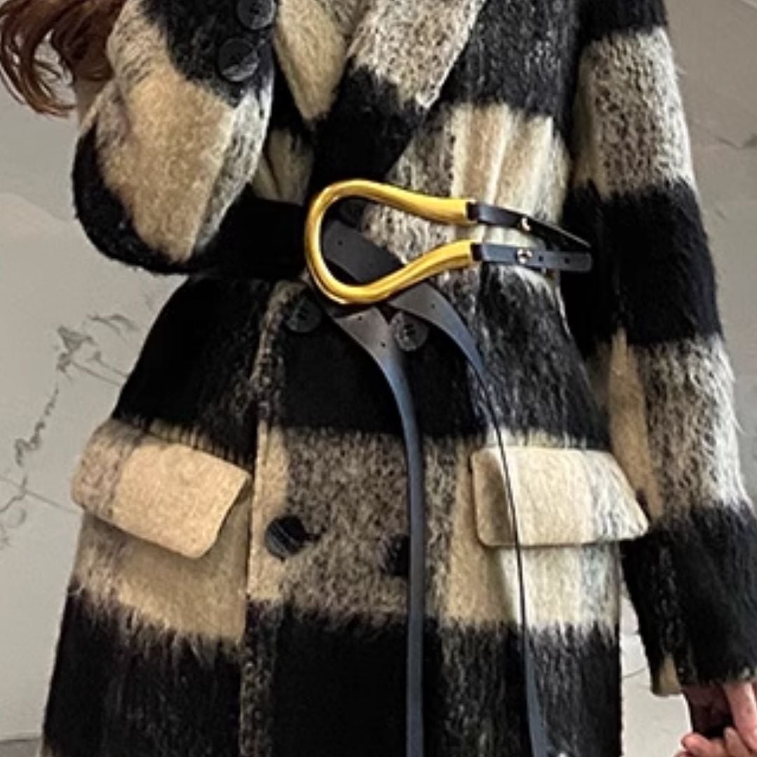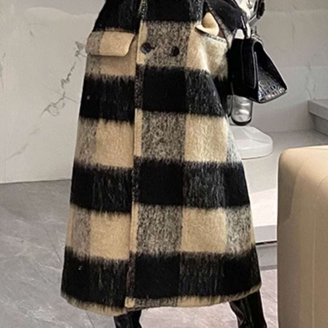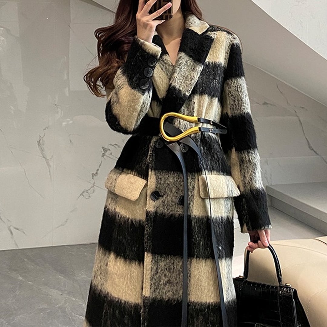 Check wool long coat V785