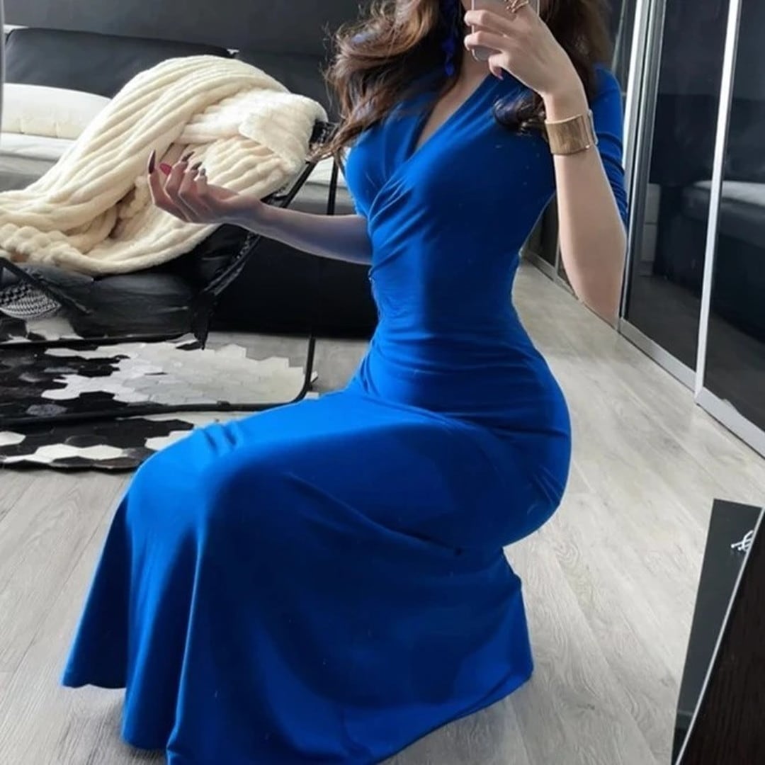 V-neck Mermaid Line Wrap Dress V2554