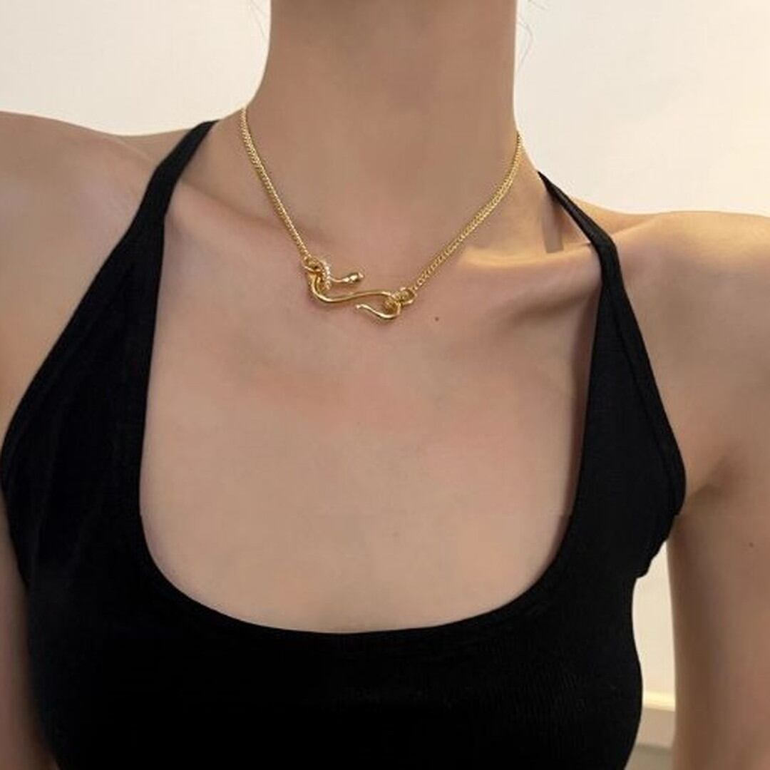 ラウンドシェイプのチェーンが首元に優しく寄り添い、ユニークなフック式クラスプがアクセントになっています。デイリーユースから特別な日の装いまで、幅広いシーンで活躍します。