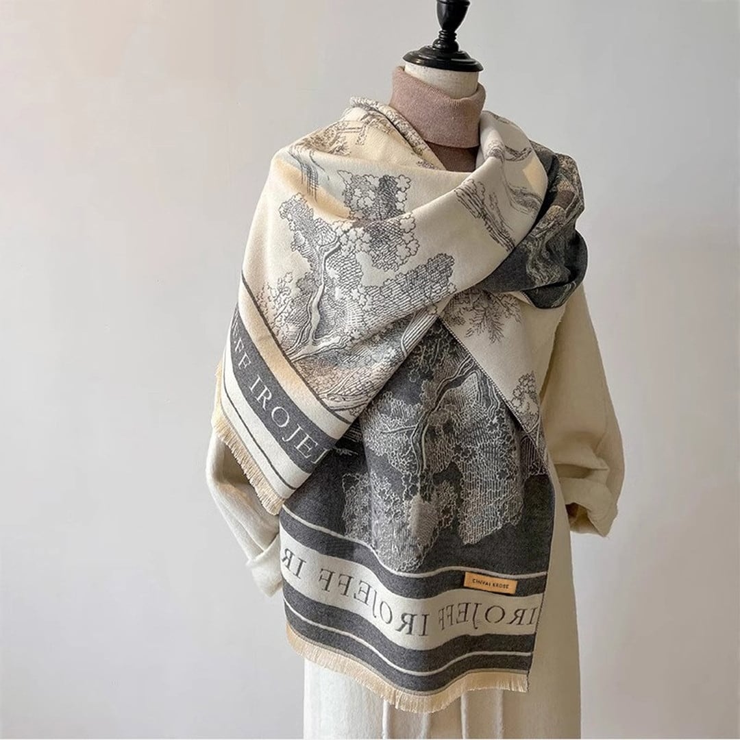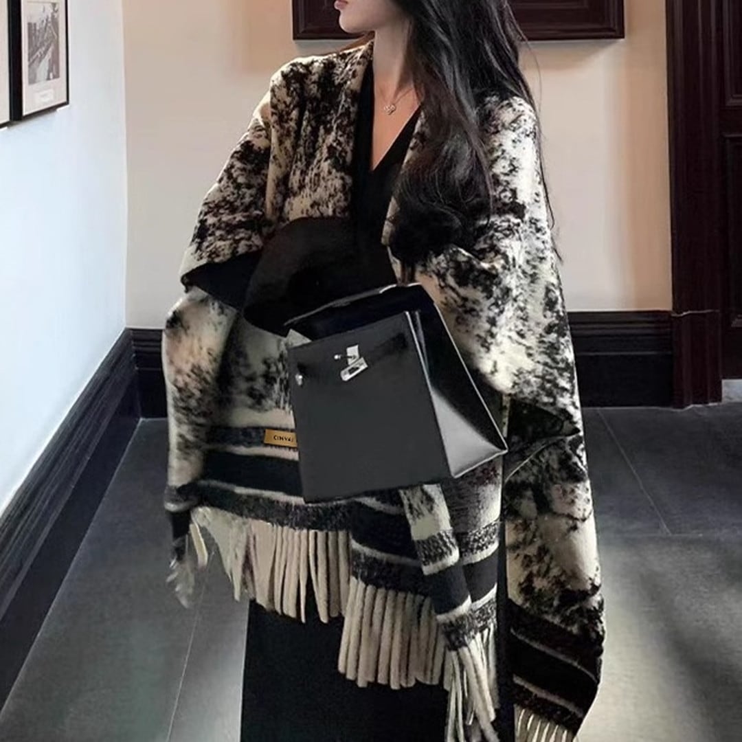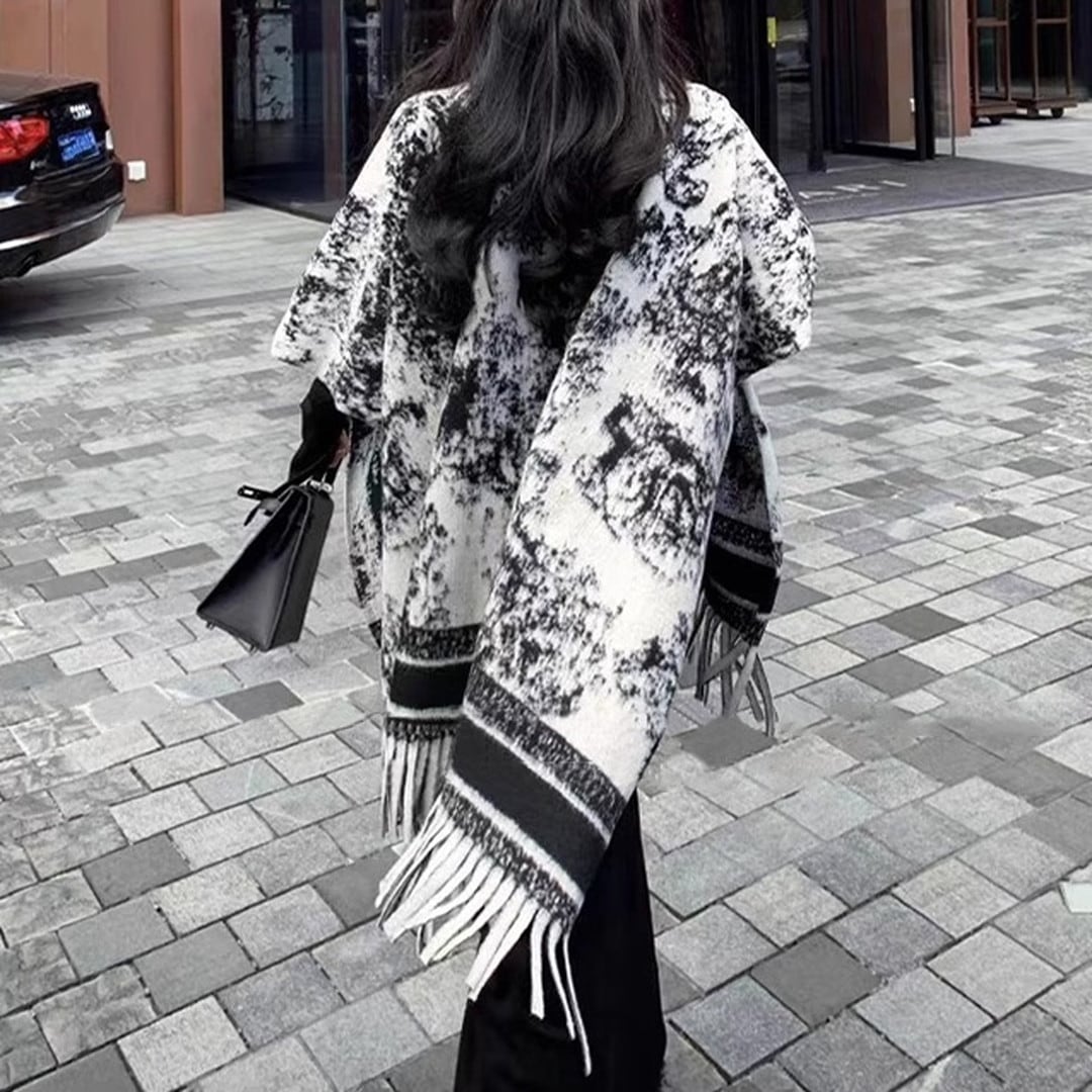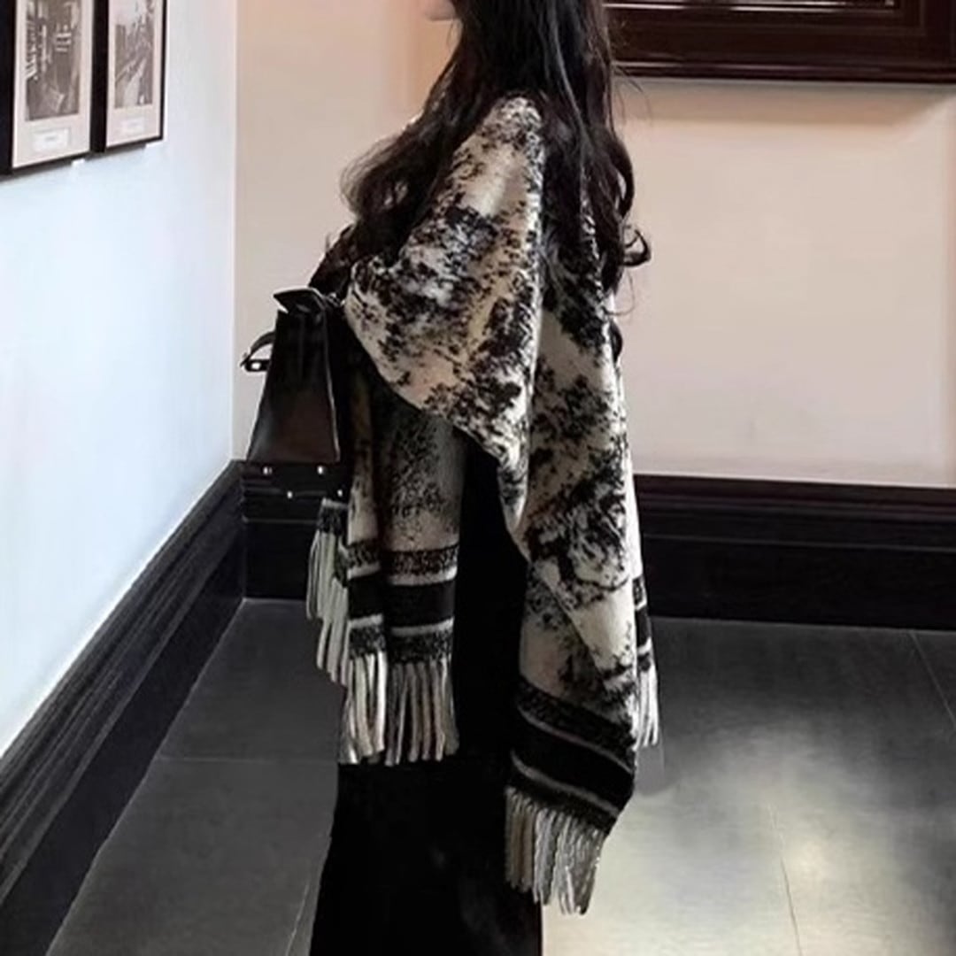大判ストールで、暖かさ、そしてスタイリッシュさを手に入れてください。140cm×110cmのたっぷりとしたサイズは、肩から羽織るだけで、洗練された雰囲気を演出します。落ち着いた色合いのデザインは、どんなスタイルにも合わせやすく、春秋ファッションに欠かせないアイテムです。