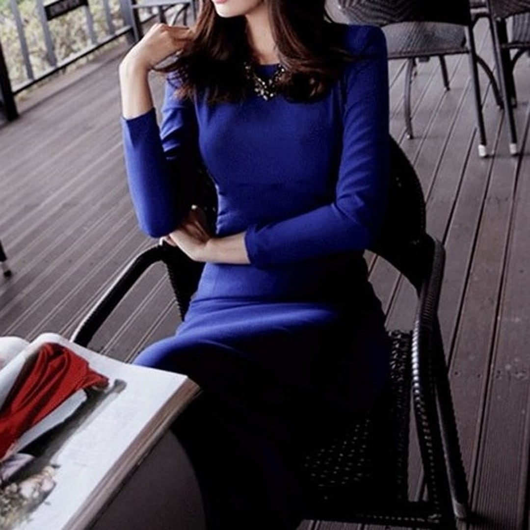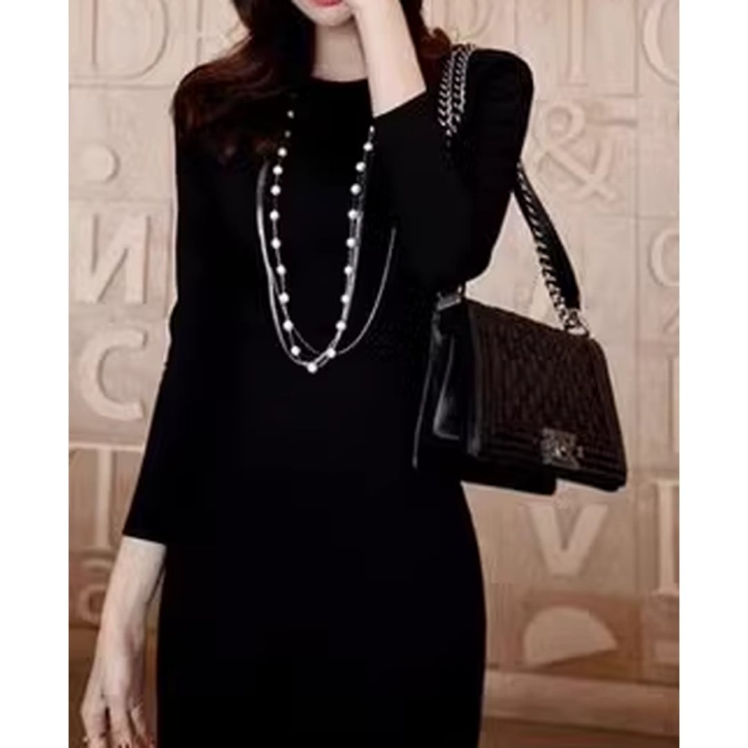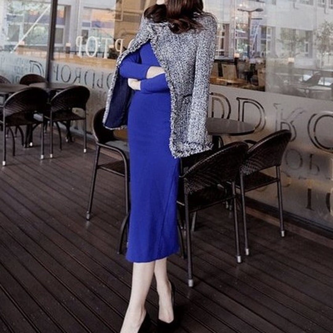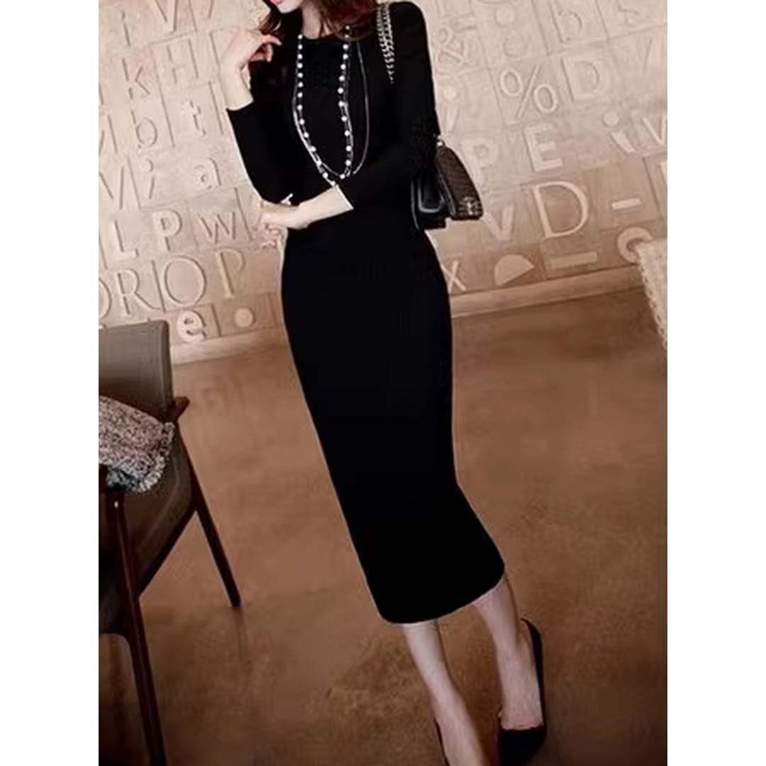 ロング丈のタイトシルエットワンピースは、洗練された印象を与え、様々なシーンで活躍します。