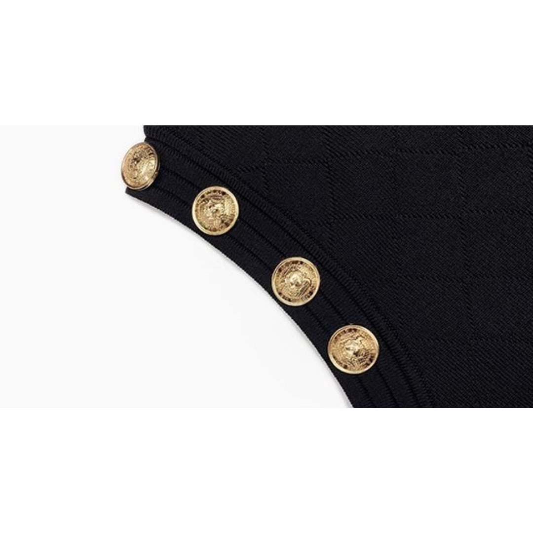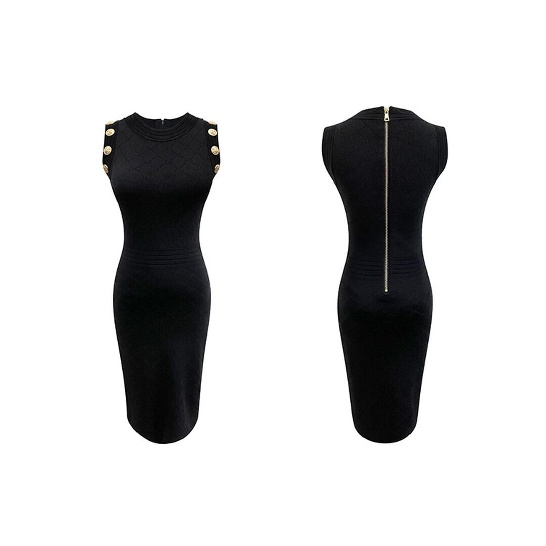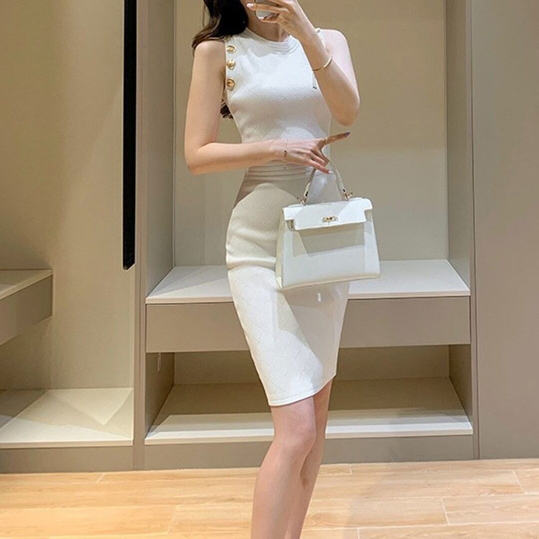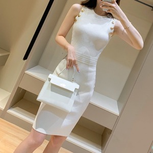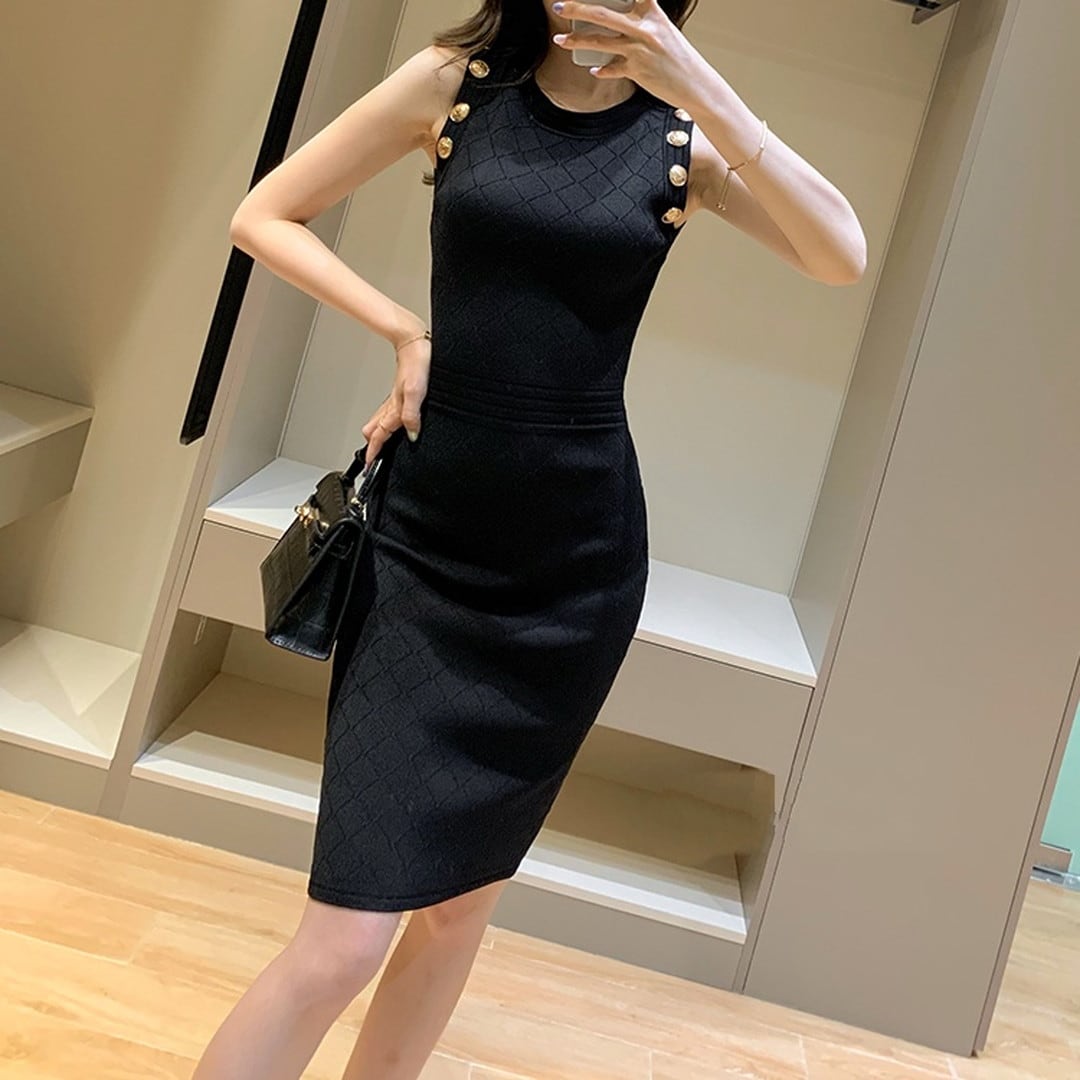 Metal Button Detail Knit Round Neck Sleeveless Dress(2color) V2622